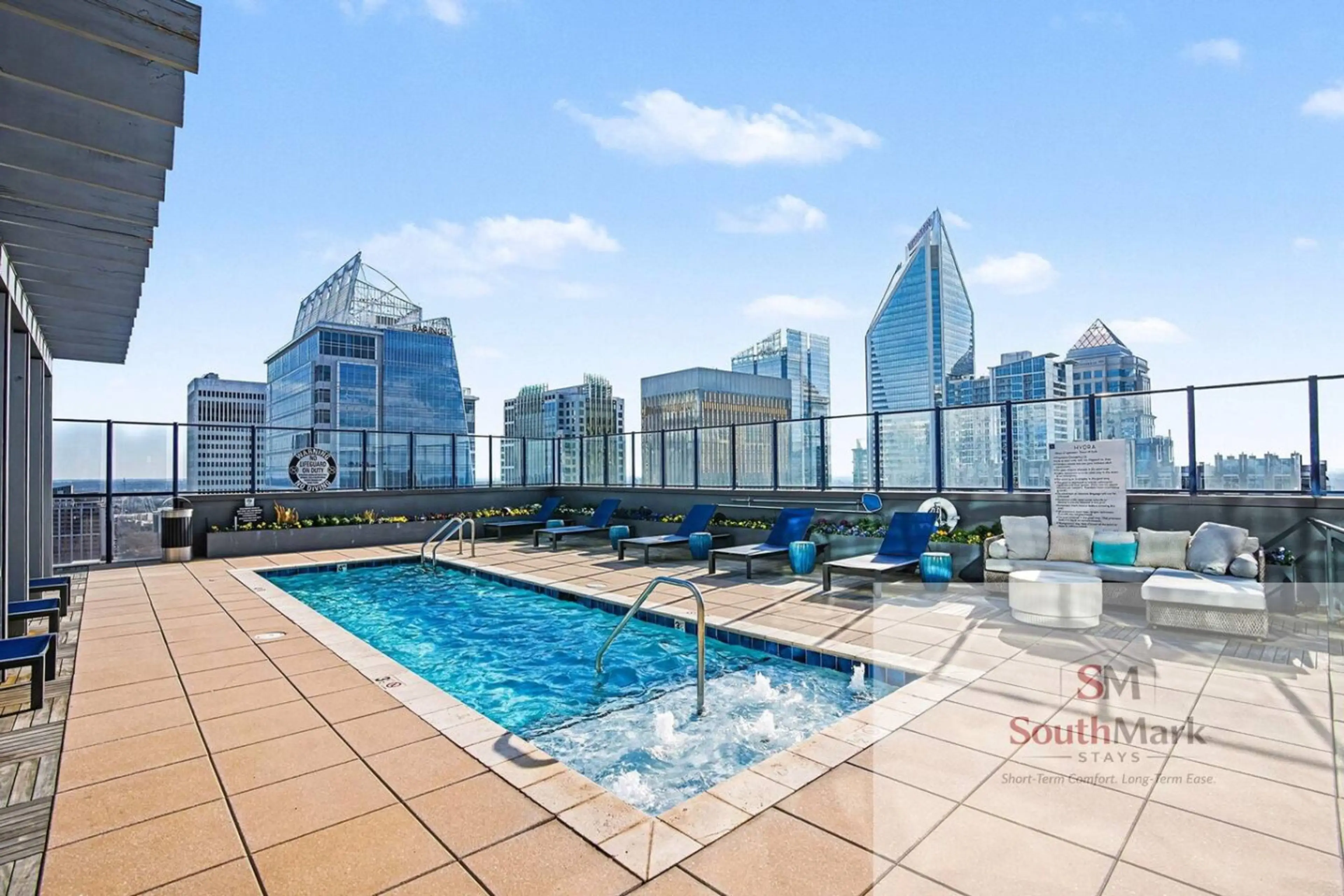 Managed By SouthMark Stays Immerse yourself in luxury at our City Center studio with a King bed, boasting stunning views. Enjoy top-tier amenities: 24/7 concierge, rooftop pool and gym, Wi-Fi, Smart TV, washer/dryer, and secured parking. Steps from BB&T Ballpark and BOA Stadium. Pet-friendly (fee)....